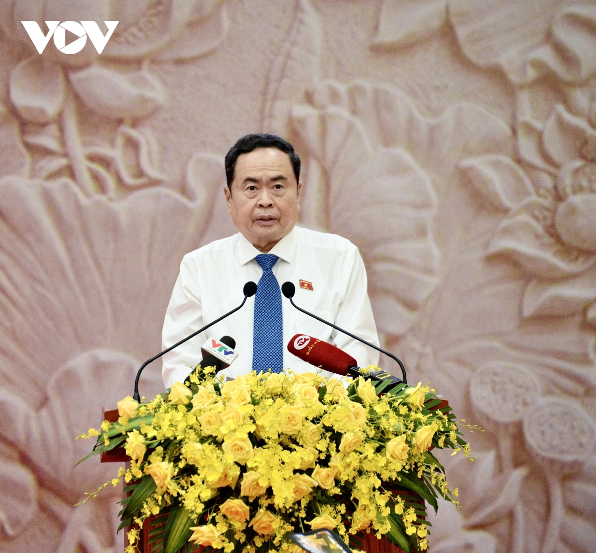 Ketua MN Tran Thanh Man berbicara pada acara tersebut (Foto: VOV) |