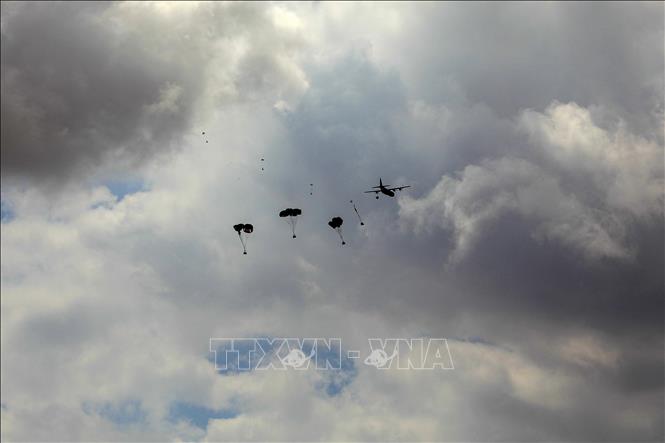 Bẩng bantuan dilepaskan dari udara ke Jalur Gaza (Foto: xinhua/vna) |