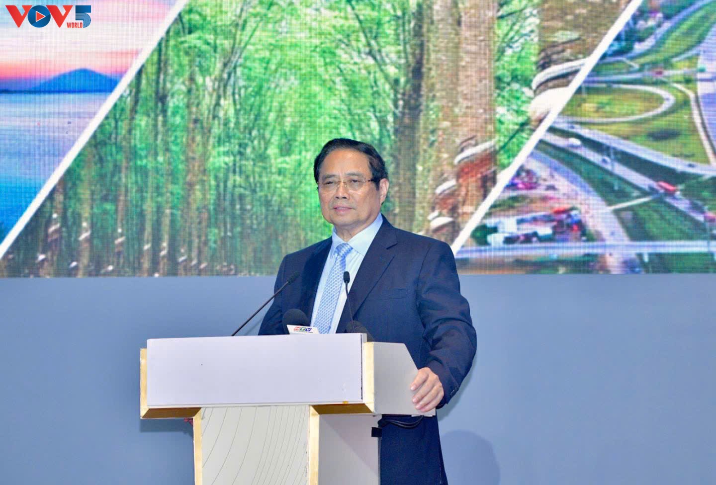 PM Pham Minh Chinh berbicara di depan sidang tersebut (Foto: VOV) |