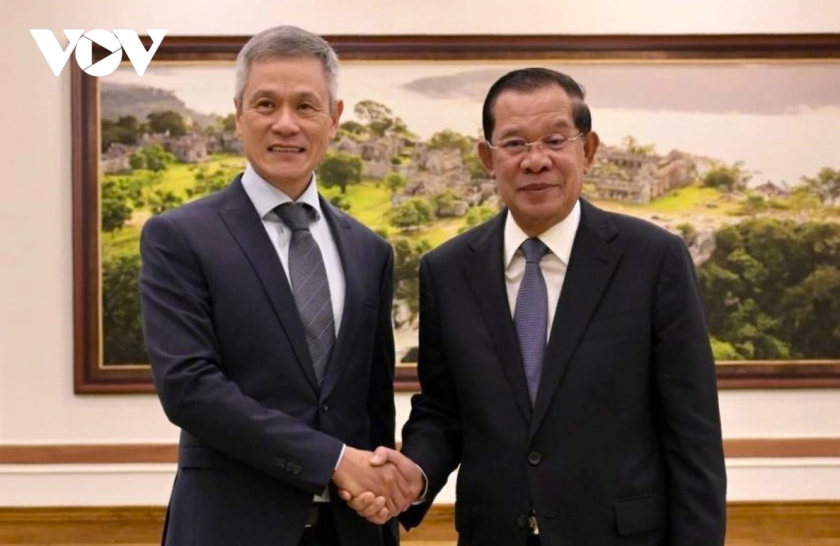 Dubes Nguyen Minh Vu dan Bapak Samdech Techo Hun Sen, Ketua Majelis Tinggi, Ketua Partai Rakyat Kamboja. Foto: VOV |