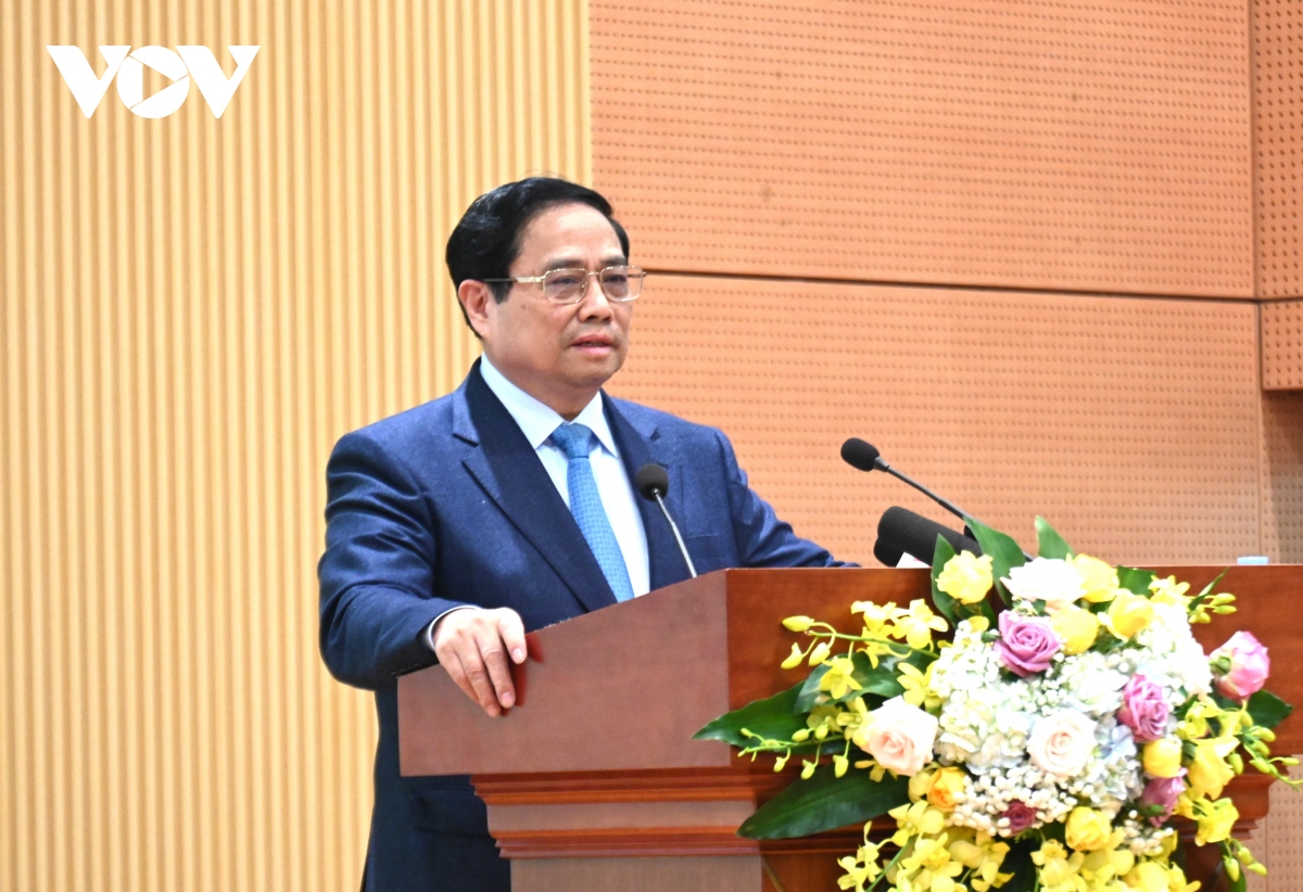PM Pham Minh Chinh berpidato di konferensi (Foto: vov) |