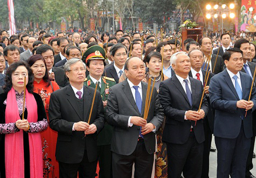 (VOVworld) - Pesta Bukit Dong Da untuk memperingati ultah ke-228 Kemenengan Ngoc Hoi-Dong Da (1789-2017) telah diadakan pada Rabu pagi (1 Febaruari) yang jatuh pada tanggal 5 bulan satu tahun imlek. Perdana Menteri (PM) Vietnam, Nguyen Xuan Phuc telah menghadiri upacara membakar hio di depan pesta ini.