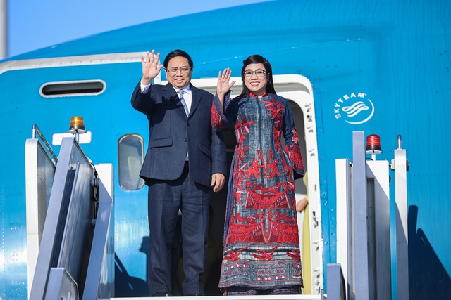 PM Pham Minh Chinh dan Istri tiba di Bukares, memulai kunjungan resmi di Rumania (Foto: VGP / Nhat Bac) |