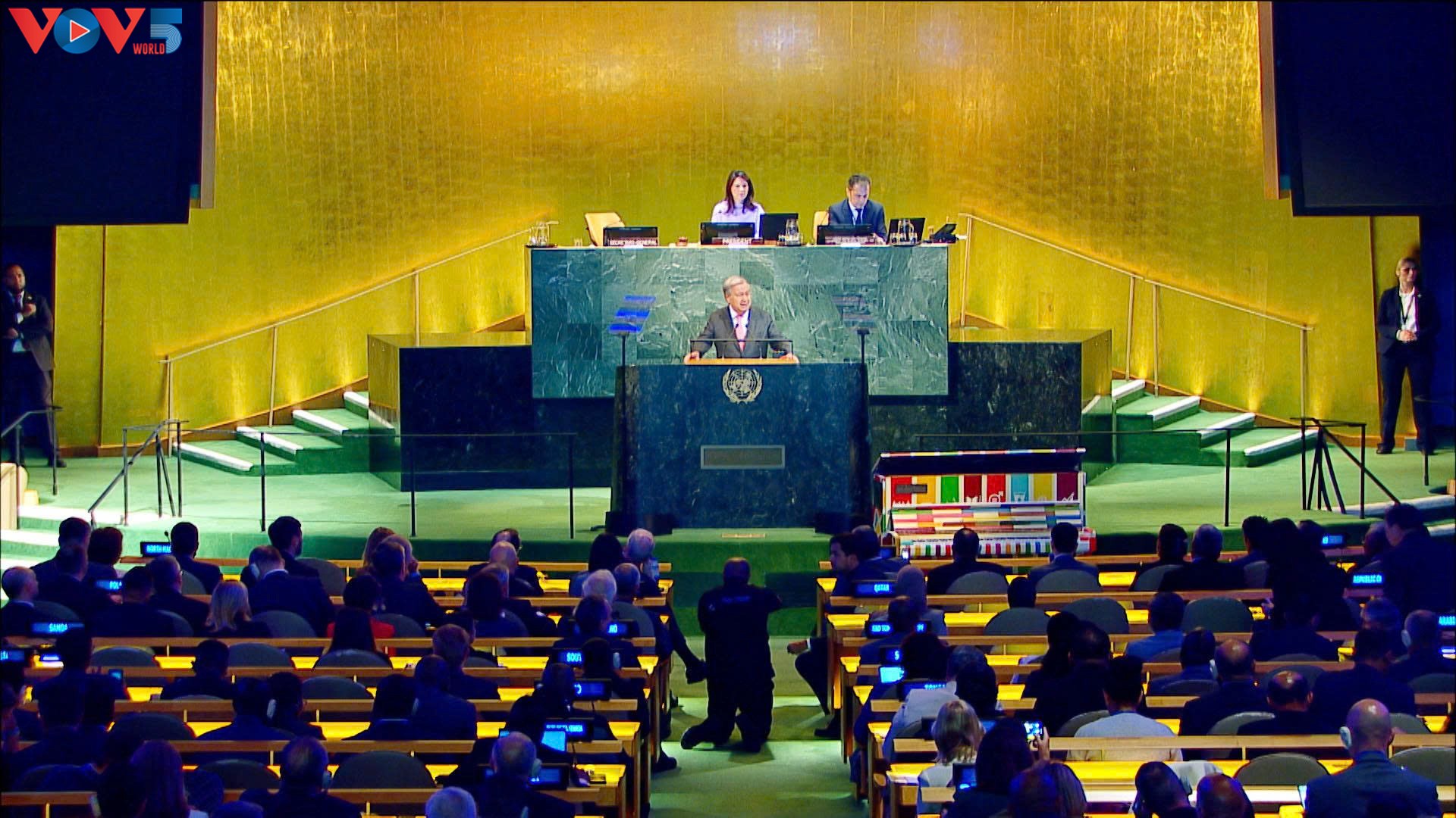 Dalam pidatonya, Sekretaris Jenderal PBB, Antonio Guterres menyerukan semua negara untuk mematuhi hukum internasional, menjunjung tinggi Piagam PBB, dan bekerja sama menuju ke perdamaian, keadilan, dan kemajuan bagi semua orang.