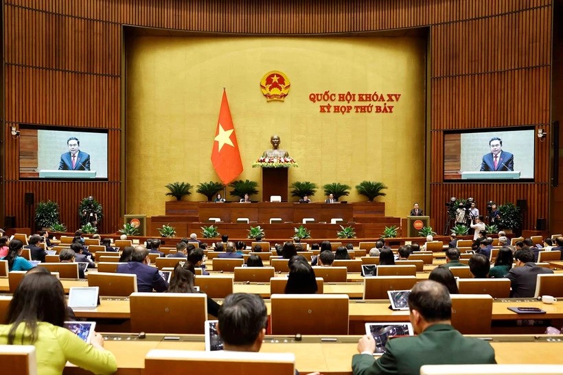 Ketua MN Tran Thanh Man berbicara di depan upacara penutupan Persidangan ke-7 MN Vietnam (Foto: Doan Tuan/VNA) |