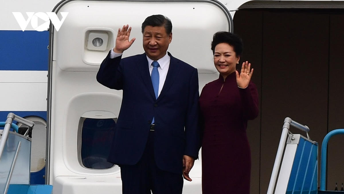 Sekjen, Presiden Tiongkok, Xi Jinping dan istri tiba di Kota Hanoi (Foto: VOV) |