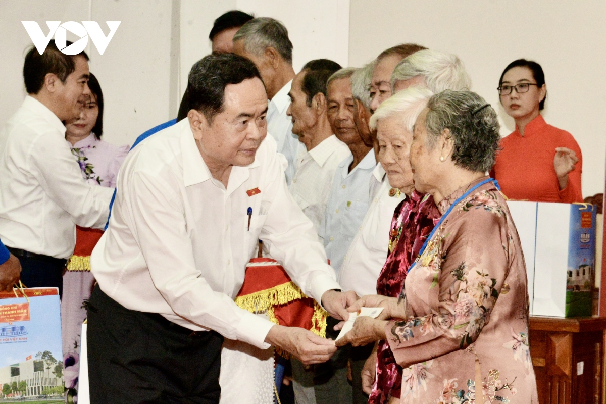 Pada upacara tersebut, Ketua MN Tran Thanh Man telah menyampaikan 20 bingkisan kepada para Ibu Vietnam heroik, keluarga-keluarga yang mendapat kebijakan prioritas, orang-orang yang berjasa terhadap revolusi, menyaksikan upacara serah-terima 100 rumah persatuan besar yang diberikan Wakil Grup Permigasan Vietnam.