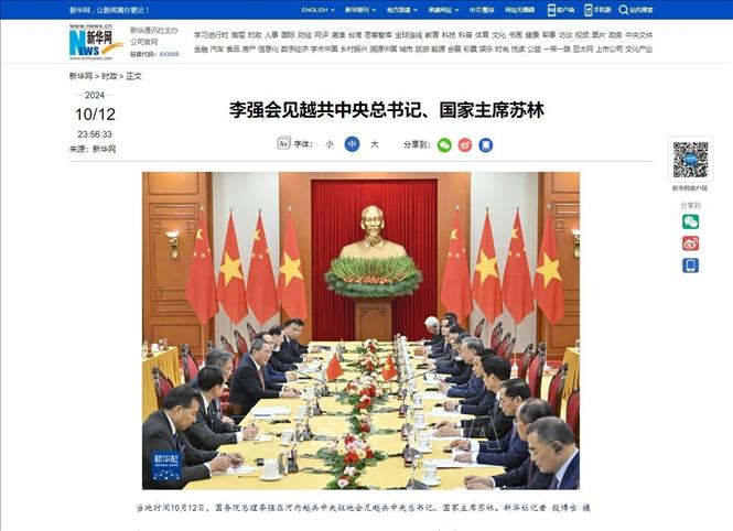 Xinhua meliput pertemuan antara PM Li Qiang dan Sekjen, Presiden Vietnam, To Lam. Foto: VNA |