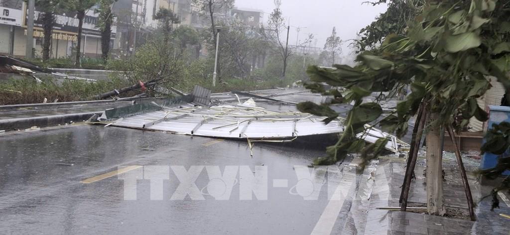 Badai mendarat di Provinsi Quang Ninh, banyak pohon patah. (Foto: Duc Hieu-VNA) |