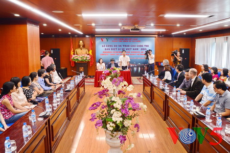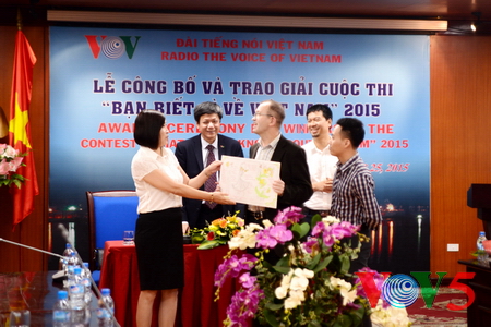 (VOVworld) – Pada Jumat (25 September), di kota Hanoi, Radio Suara Vietnam (VOV) mengadakan acara penyampaian hadiah sayembara “Apa yang Anda ketahui tentang Vietnam tahun 2015”. Diadakan lima tahun sekali, sayembara ini dicanangkan oleh Kanal Siaran Luar Negeri Nasional (VOV5) untuk semua pendengar VOV yang adalah orang asing di seluruh dunia dan para diaspora Vietnam yang sedang bekerja dan tinggal di luar negeri.