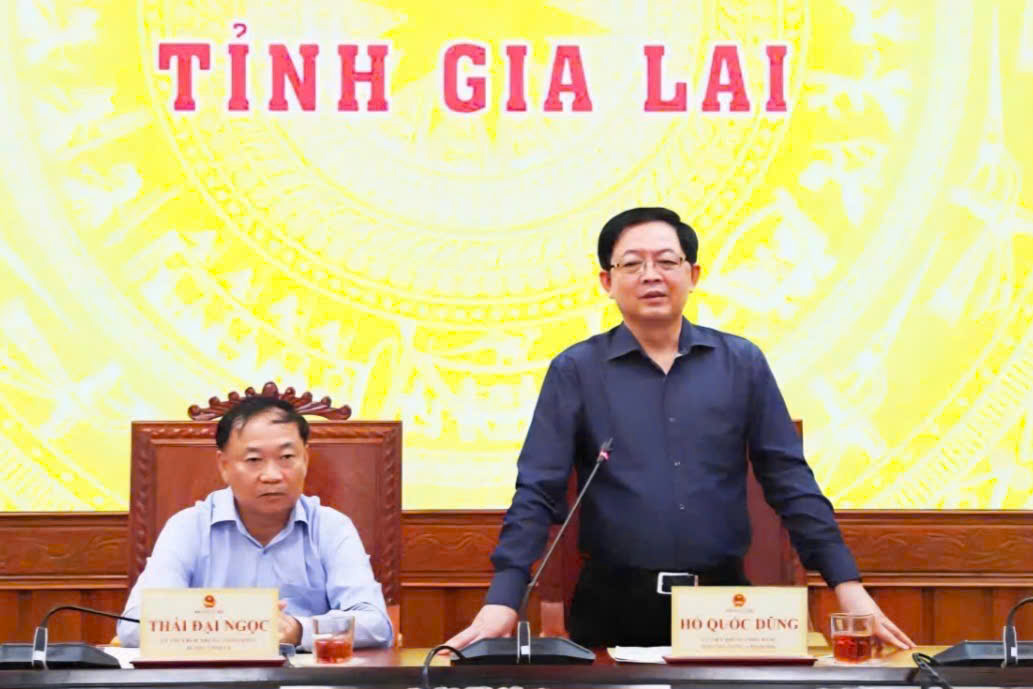 Wakil Perdana Menteri Ho Quoc Dung berbicara pada temu kerja dengan Provinsi Gia Lai . (Foto: VOV) |