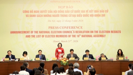(VOVWORLD) - Pada Sabtu sore (21 Maret), Dewan Pemilihan Nasional mengadakan konferensi pers untuk mengumumkan Resolusi Dewan Pemilihan Nasional tentang hasil pemilu dan daftar orang-orang yang terpilih menjadi anggota Majelis Nasional (MN) angkatan XVI.