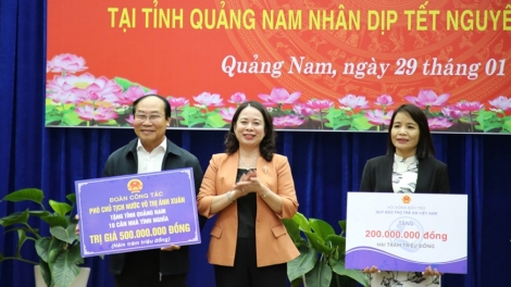 (VOVWORLD) - Wakil Presiden Vo Thi Anh Xuan, pada Senin (29 Januari), menyampaikan 400 bingkisan kepada keluarga-keluarga penerima kebijakan prioritas, orang miskin, buruh, dan pekerja, memberikan dana sebesar 200 juta VND kepada anak-anak yang mengalami kesulitan, dan memberikan secara simbolik bantuan sebesar 500 juta VND untuk membangun rumah kasih sayang di Provinsi Quang Nam.