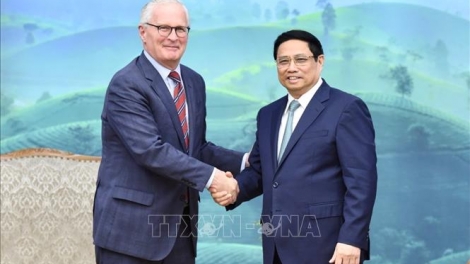 (VOVWORLD) - Perdana Menteri (PM) Vietnam, Pham Minh Chinh, pada Kamis sore (07 Desember), di Kota Hanoi, telah menerima John Neuffer, Ketua Asosiasi Industri Semikonduktor Amerika Serikat (SIA), dan pimpinan badan-badan usaha papan atas di AS seperti Intel, Qualcom, Ampere, ARM, dan sebagainya yang sedang melakukan kunjungan kerja di Vietnam.