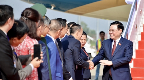 (VOVWORLD) - Pada Senin pagi (4 Desember), Ketua Majelis Nasional (MN) Vietnam, Vuong Dinh Hue dan delegasi tingkat tinggi MN Vietnam tiba di Bandara Internasional Wattay, Ibu kota Vientiane, untuk mulai menghadiri Konferensi Tingkat Tinggi (KTT) Parlemen Kamboja-Laos-Vietnam (CLV) dan melakukan kunjungan kerja di Laos.