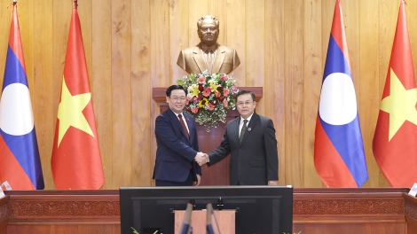 Ketua MN Vuong Dinh Hue Lakukan Pembicaraan dengan Ketua Parlemen Laos, Saysomphone Phomvihane