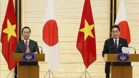 (VOVWORLD) - Pada Senin malam (27 November), di Tokyo, Ibu kota Jepang, setelah pembicaraan yang mencapai sukses baik, Presiden Vietnam, Vo Van Thuong dan Perdana Menteri (PM) Jepang, Kishida Fumio melakukan jumpa pers untuk menginformasikan hasil pembicaraan, di antaranya kedua pemimpin telah mengeluarkan Pernyataan bersama tentang peningkatan hubungan dua negara menjadi Kemitraan strategis komprehenisf demi perdamaian dan kemakmuran di Asia dan di dunia.