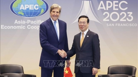(VOVWORLD) - Pada Jumat pagi (17 November) (waktu WIB), di San Francisco, Presiden Vietnam, Vo Van Thuong menerima Utusan Khusus Presiden Amerika Serikat (AS) urusan Iklim, John Kerry sehubungan dengan kehadirannya pada Pekan Tingkat Tinggi Forum Kerja Sama Ekonomi Asia-Pasifik (APEC) 2023.