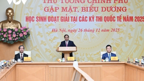 (VOVWORLD) - Pada Jumat pagi (26 Desember), di Kota Hanoi, Perdana Menteri (PM) Vietnam, Pham Minh Chinh memimpin pertemuan untuk memberikan apresiasi kepada para siswa yang berhasil meraih penghargaan dalam berbagai kompetisi internasional tahun 2025.