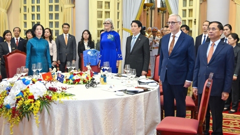 (VOVWORLD) - Pada Rabu malam (10 September), di Kota Hanoi, Presiden Vietnam, Luong Cuong dan Istri telah memimpin resepsi yang khidmat untuk Gubernur Jenderal Australia, Sam Mostyn dan Suaminya beserta delegasi tingkat tinggi Australia yang sedang melakukan kunjungan kenegaraan di Vietnam dari tgl 9 sampai 12 September.