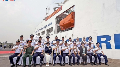 (VOVWORLD) - Kapal Polisi Laut Vietnam dengan kode 8001 dan rombongan kerja Polisi Laut Vietnam tiba di Indonesia pada tgl 25 Agustus.