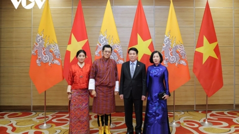 (VOVWORLD) - Pada Selasa malam (19 Agustus), di Pusat Konferensi Internasional (Kota Hanoi), Presiden Vietnam, Luong Cuong dan Istri memimpin resepsi kenegaraan yang khidmat untuk Raja Bhutan Jigme Khesar Namgyel Wangchuck dan Permaisuri beserta delegasi tingkat tinggi Bhutan yang sedang melakukan kunjungan Kenegaraan di Vietnam dari tanggal 18 hingga 22 Agustus.