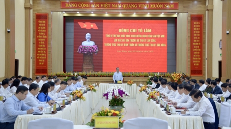 (VOVWORLD) - Sekretaris Jenderal (Sekjen) Komite Sentral Partai Komunis Vietnam (KS PKV), To Lam, pada hari Senin pagi (09 Juni), di Provinsi Lam Dong, telah memimpin sidang kerja dengan Badan Harian Komite Partai Provinsi Lam Dong dan Badan Harian Komite Partai Provinsi Binh Thuan dan Dak Nong tentang situasi penggelaran melaksanakan berbagai resolusi dan kesimpulan KS PKV, menata aparat dari 3 daerah tersebut yang dikaitkan dengan penyelenggaraan Kongres Partai berbagai tingkat, menuju ke Kongres Nasional XIV PKV, pekerjaan pertahanan-keamanan, melaksanakan tugas pertumbuhan ekonomi di daerah-daerah dan pekerjaan menjamin jaring pengaman sosial.