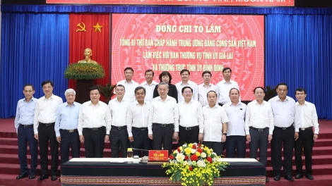 (VOVWORLD) - Sekretaris Jenderal (Sekjen) Komite Sentral Partai Komunis Vietnam (KS PKV), To Lam, pada Senin (02 Juni), di Kota Pleiku, Provinsi Gia Lai, telah memimpin temu kerja dengan Badan Harian Komite Partai Komunis Provinsi Gia Lai dan Badan Harian Komite Partai Komunis Provinsi Binh Dinh tentang situasi pelaksanaan Resolusi Sidang Pleno ke-11 KS PKV angkatan XIII di dua daerah tersebut.