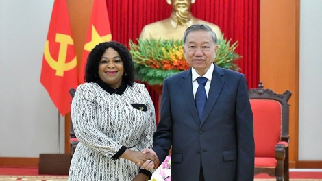 (VOVWORLD) - Sekretaris Jenderal (Sekjen) Komite Sentral Partai Komunis Vietnam (KS PKV), To Lam, pada hari Selasa pagi (19 Mei), di Kota Hanoi, telah menerima Wakil pertama Sekjen Partai Kongres Bangsa Afrika (ANC) yang berkuasa dari Afrika Selatan, Nomvula Mokonyane yang sedang melakukan kunjungan kerja di Vietnam dari tgl 17 hingga tgl 22 Mei.