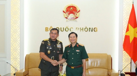 (VOVWORLD) - Jenderal Nguyen Tan Cuong, Anggota Komite Sentral Partai Komunis vietnam (KS PKV), Anggota Harian Komisi Militer KS PKV, Kepala Staf Umum Tentara Rakyat Vietnam, Deputi Menteri Pertahanan Vietnam, pada Senin (19 Mei), di Kota Hanoi, telah menerima Jenderal Maruli Simanjuntak, Kepala Staf Umum Tentara Nasional Indonesia Angkatan Darat.