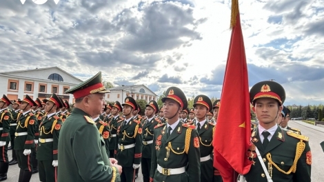 (VOVWORLD) - Pada Rabu sore (7 Mei), Mayor Jenderal Nguyen Quang Ngoc, Wakil Kepala Staf Umum Tentara Rakyat Vietnam mengunjungi dan menyemangati delegasi komandan dan prajurit Vietnam peserta parade militer di Lapangan Merah, di Moskow, Ibu kota Federasi Rusia sehubungan dengan peringatan HUT ke-80 Kemenangan atas Fasis (1945 – 2025).