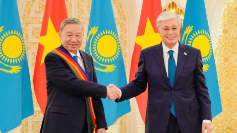 (VOVWORLD) - Dalam rangka kunjungan Kenegaraan di Republik Kazakhstan, pada Selasa (06 Mei), Sekretaris Jenderal (Sekjen) Komite Sentral Partai Komunis Vietnam (KS PKV), To Lam telah melakukan pembicaraan dengan Presiden Kazakhstan, Kassym-Jomart Tokayev.