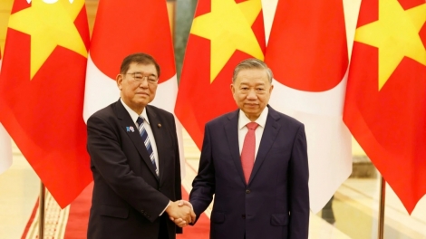 (VOVWORLD) - Pada Minggu sore (27 April), di Kota Hanoi, Sekretaris Jenderal Komite Sentral Partai Komunis Vietnam (Sekjen KS PKV) To Lam melakukan pertemuan dengan Ketua Partai Liberal Demokrat, Perdana Menteri (PM) Jepang, Ishiba Shigeru sehubungan dengan kunjungan resmi PM Jepang dan Istri di Vietnam dari tanggal 27 sampai 29 April.