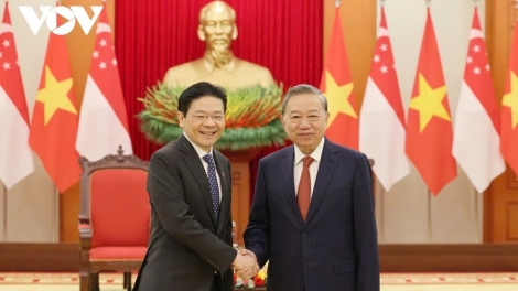 (VOVWORLD) - Pada Rabu sore (26 Maret), di Kota Hanoi, Sekretaris Jenderal (Sekjen) Komite Sentral Partai Komunis Vietnam, To Lam menerima Perdana Menteri (PM) Republik Singapura, Lawrence Wong yang sedang melakukan kunjungan resmi di Vietnam.