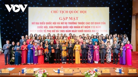 (VOVWORLD) - Sehubungan dengan peringatan HUT ke-115 Hari Perempuan Internasional (08/3/1910 - 08/3/2025), pada Kamis pagi (6 Maret), di Kota Hanoi, Ketua Majelis Nasional (MN) Vietnam, Tran Thanh Man melakukan pertemuan dengan para anggota MN perempuan fulltime di Pusat, pejabat perempuan yang dikelola Komite Tetap MN dan pemimpin perempuan tingkat direktorat dari Dewan Etnis, Komisi-Komisi MN, badan-badan pembantu Komite Partai MN dan Kantor MN.