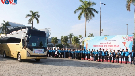 (VOVWORLD) - Di Pusat Pekan Raya Kota Da Nang, pada Jumpat pagi (13 Februari), Federasi Serikat Buruh Kota Da Nang menyelenggarakan Program “Kendaraan Serikat Buruh” untuk membawakan para buruh yang dilanda kesulitan kembali ke kampung halaman untuk merayakan Hari Raya Tahun Baru Imlek (atau Hari Raya Tet).