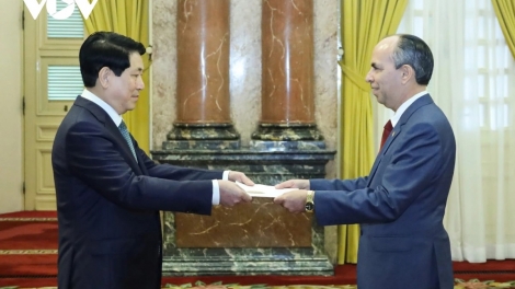 (VOVWORLD) - Pada Kamis sore (26 Desember), di Kota Hanoi, Presiden Luong Cuong telah menerima Duta Besar (Dubes) Republik Kuba, para Dubes Republik Zimbawe dan Negara Plurinasional Bolivia yang datang menyampaikan surat kepercayaan untuk menerima tugas di Vietnam.