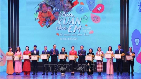 (VOVWORLD) - Pada Kamis malam (19 Desember), di Gedung Teater Hanoi, Dana Sponsor Anak-Anak Vietnam menyelenggarakan program “Musim semi untukmu” yang ke-18 dengan tema: "Mewarnai untuk anak-anak”.