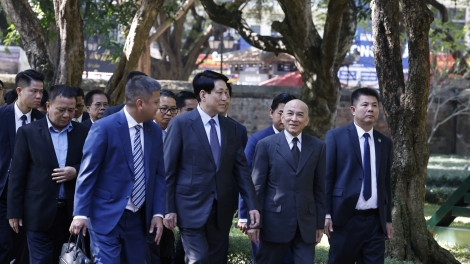 (VOVWORLD) - Presiden Vietnam, Luong Cuong dan Raja Kamboja, Norodom Sihamoni, pada Jumat pagi (29 November), di Kota Hanoi, telah mengunjungi Kuil Sastra Van Mieu – Quoc Tu Giam (di Ibukota Hanoi) dan menikmati teh Vietnam.