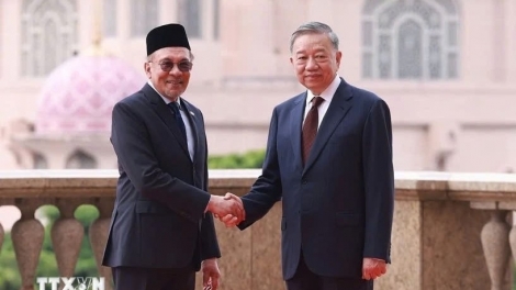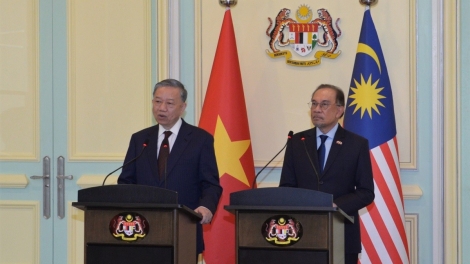 (VOVWORLD) - Dalam rangka kunjungan resmi di Malaysia, pada Kamis sore (21 November), segera setelah pembicaaran, Sekretaris Jenderal Komite Sentral Partai Komunis Vietnam (Sekjen KS PKV), To Lam dan Perdana Menteri (PM) Malaysia, Anwar Ibrahim bersama-sama memimpin jumpa pers.