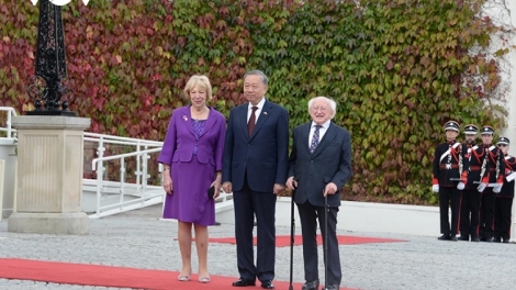 (VOVWORLD) - Pada Rabu malam (2 Oktober), waktu lokal, Presiden Irlandia, Michael D.Higgins, telah memimpin resepsi untuk Sekretaris Jenderal Komite Sentral Partai Komunis Vietnam (Sekjen KS PKV), Presiden To Lam dan delegasi tingkat tinggi Vietnam yang sedang melakukan kunjungan Kenegaraan di Irlandia.