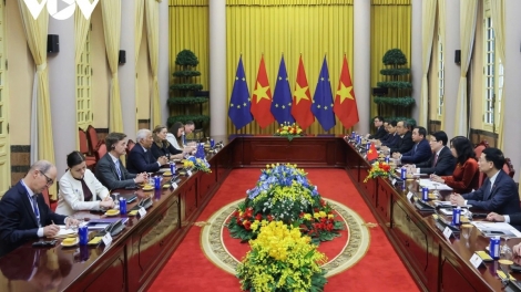 (VOVWORLD) - Vietnam dan Uni Eropa memutuskan untuk meningkatkan hubungan menjadi Kemitraan strategis komprehensif. Demikian informasi yang disampaikan Presiden Vietnam, Luong Cuong dan Presiden Dewan Eropa, Antonio Costa dalam konferensi pers, pada Kamis (29 Januari), di Kota Hanoi, setelah pembicaraan tingkat tinggi.