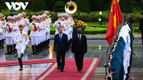(VOVWORLD) - Sekretaris Jenderal (Sekjen) Komite Sentral Partai Komunis Vietnam (KS PKV), Presiden To Lam dan Istri, pada Jumat sore (06 September), telah memimpin upacara penyambutan resmi kepada Presiden Republik Guinea-Bissau, Umaro Sissoco Embaló dan Istri yang melakukan kunjungan resminya di Vietnam dari tgl 05-08 September.
