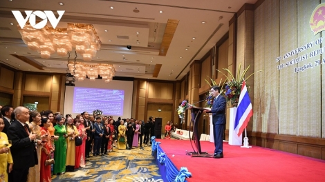 (VOVWORLD) - Kedutaan Besar (Kedubes) Vietnam di Thailand, pada Kamis malam (29 Agustus), di Bangkok, Ibukota Thailand, telah menyelenggarakan dengan khidmat Upacara peringatan HUT ke-79 Hari Nasional 2/9 (02/09/1945-02/09/2024) dengan partisipasi dari Ketua Majelis Tinggi Thailand, Mongkol Surasatja; Gubernur Bangkok, Chadchart Sittipunt; para Duta Besar (Dubes), Wakil korps diplomatik di Bangkok; Wakil badan-badan usaha dan komunitas orang Vietnam di Thailand.