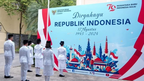 (VOVWORLD) - Pada Sabtu pagi (17 Agustus), di Kota Hanoi, Kedutaan Besar Republik Indonesia di Vietnam dengan khidmat menyelenggarakan upacara bendera sehubungan dengan peringatan HUT ke-79 Kemerdekaan Republik Indonesia (17 Agustus 1945-17 Agustus 2024).