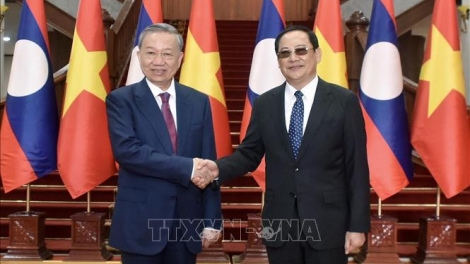 (VOVWORLD) - Dalam rangka kunjungan Kenegaraan di Republik Demokratik Rakyat Laos, pada Kamis pagi (11 Juli), di Kantor Perdana Menteri (PM) di Vientiane, Ibukota Laos, Presiden Vietnam, To Lam telah beraudiensi kepada PM Laos, Sonexay Siphandone.