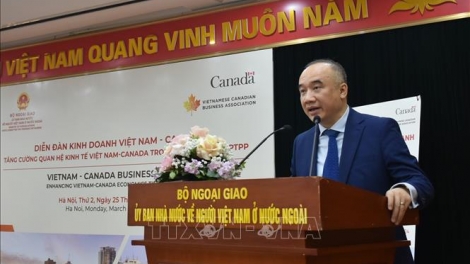 (VOVWORLD) - Pada Senin pagi (25 Maret), di Kota Hanoi, Komisi Negara urusan Orang Vietnam di luar negeri (Kementerian Luar Negeri Vietnam) berkoordinasi dengan Asosiasi Badan Usaha Vietnam-Kanada (VCBA) mengadakan “Forum bisnis: Memperkuat hubungan ekonomi Vietnam-Kanada dalam rangka Perjanjian Komprehensif dan Progresif untuk Kemitraan Trans Pasifik (CPTPP).