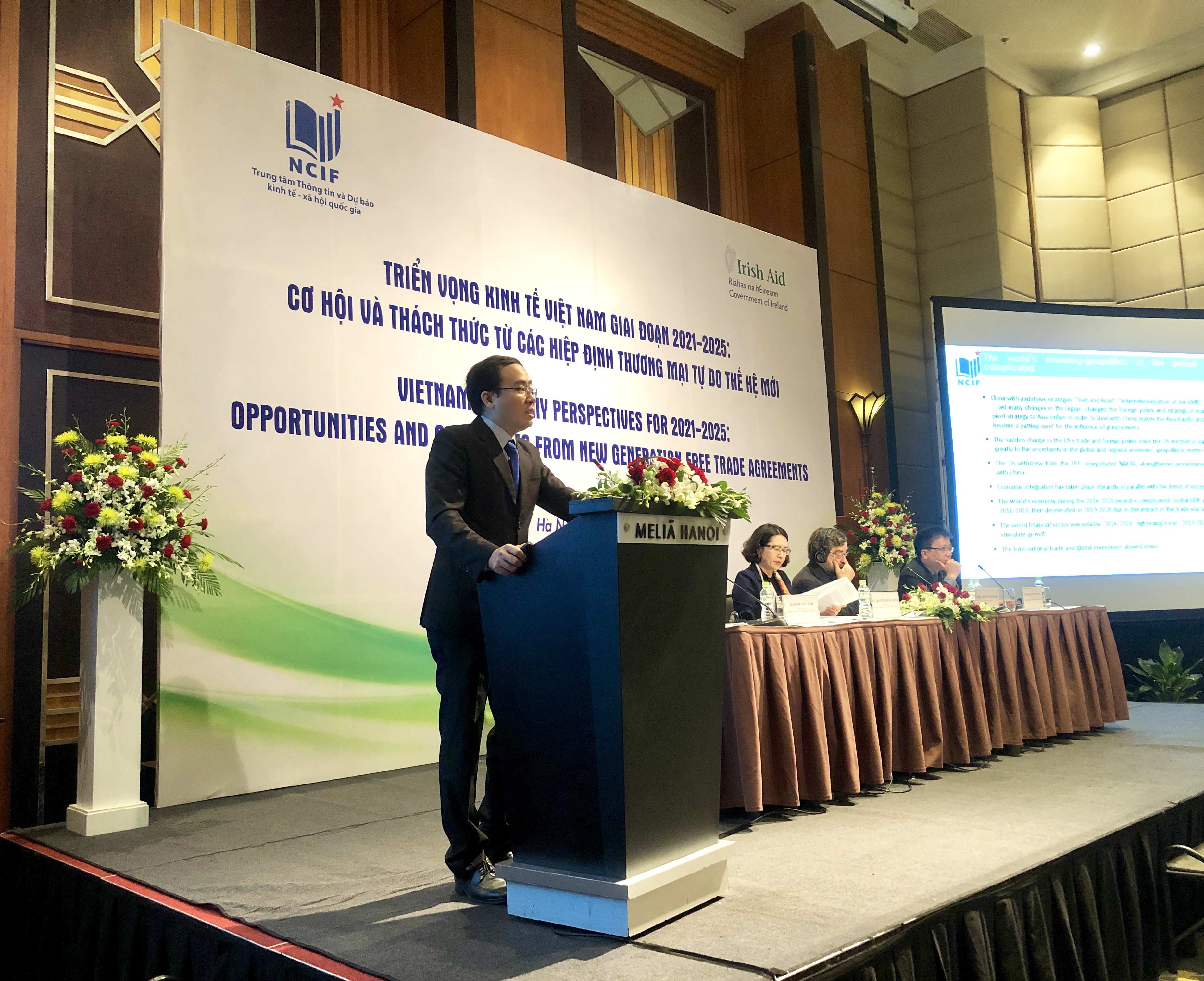 Pada lokakarya ilmu pengetahuan internasional dengam tema: “Prospek Ekonomi Vietnam untuk tahap 2021-2025: Peluang dan tantangan dari perjanjian-perjanjian perdagangan bebas generasi baru” yang diadakan oleh Pusat Informasi dan Prakiraan Sosial-Ekonomi Nasional, Kementerian Perencanaan dan Investasi Vietnam pada tangal 21/11/2019, banyak pakar telah menunjukkan dampak dari perjanjian perdagangan bebas generasi baru terhadap beberapa jatah makro perekonomian Vietnam, menilai bahwa tahap 2021-2025, ekonomi Vietnam mengalami banyak kemudahan dan kesulitan yang saling berselang-seling. Doktor Dang Duc Anh – Wakil Direktur Pusat menekankan: