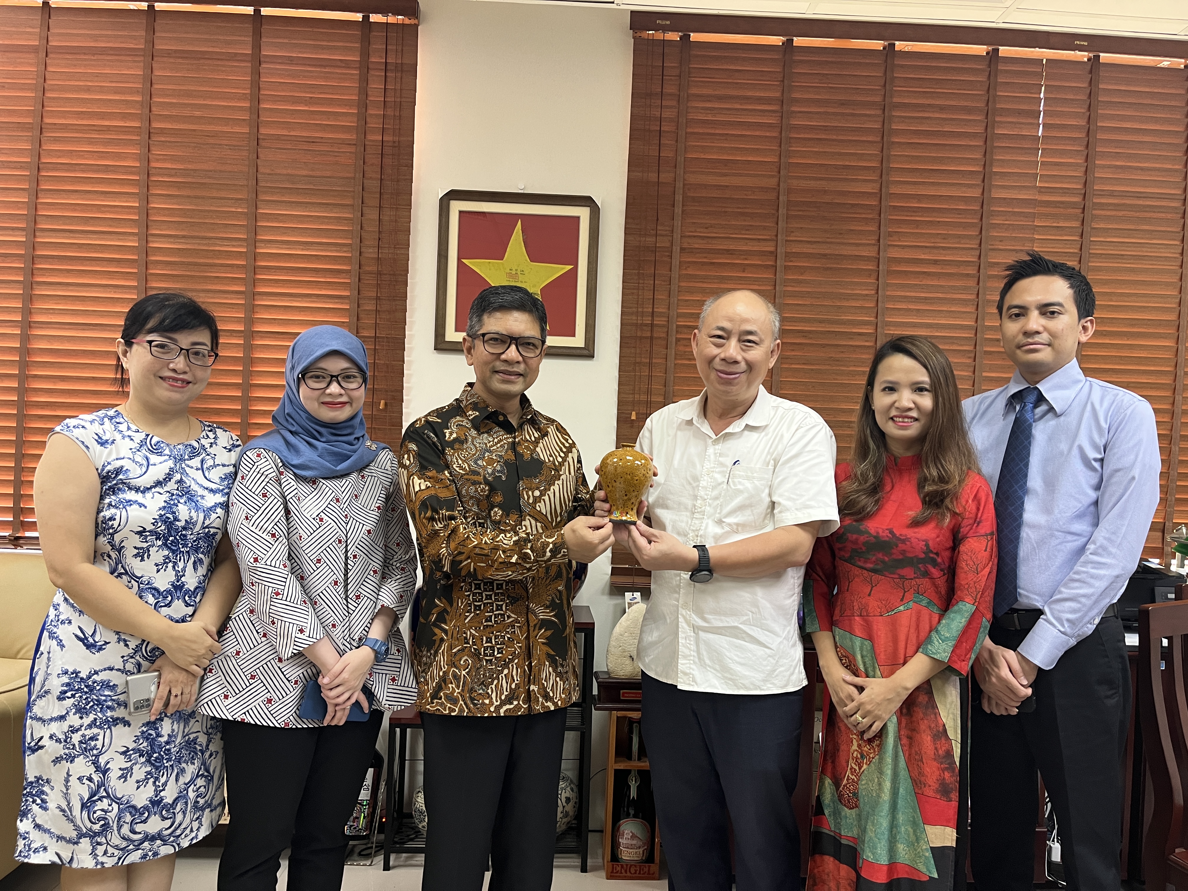 Pak Dubes: Ketika kita mengumumkan kemerdekaan pada tahun 1945 sebetulnya masalah belum selesai kenapa karena masih ada negara asing yang berusaha kembali menjajah negara kita. Jadi Indonesia dan Vietnam sama-sama meneruskan perjuangan. Kita sama-sama berperang, melawan negara asing yang ingin kembali, tetapi Vietnam berjuang lebih lama daripada Indonesia. Jadi Indonesia lebih dulu membangun, kemudian Indonesia mendirian ASEAN pada 1967 untuk memastikan bahwa kawasan kita tenang dan damai. Nah ketika Vietnam selesai berperang dan kemudian Vietnam memulai reformasi “Doi moi” vào năm 1986. Setelah itu Indonesia juga merupakan negara yang mendukung penuh supaya Vietnam bisa bergabung dengan ASEAN. Setelah Vietnam bergabung dengan ASEAN, hubungan menjadi lebih kuat dan semakin baik. Vietnam terus berkembang ekonominya dalam berbagai bidang dan sekarang Vietnam menjadi salah satu negara termaju di Asia Tenggara.