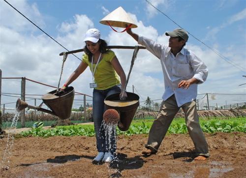 Wisatawan asing ikut menyiram sayur-sayuran di Vietnam